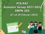 PTS dan PAT semester genap tahun ajaran 2021-2022 insyallah akan diselenggarakan pada tangal 21-25 Februari 2022 dan diadakan serentak kelas 7,8,dan 9 secara daringMore Info : IG : @officialsmpn265 Tlp..