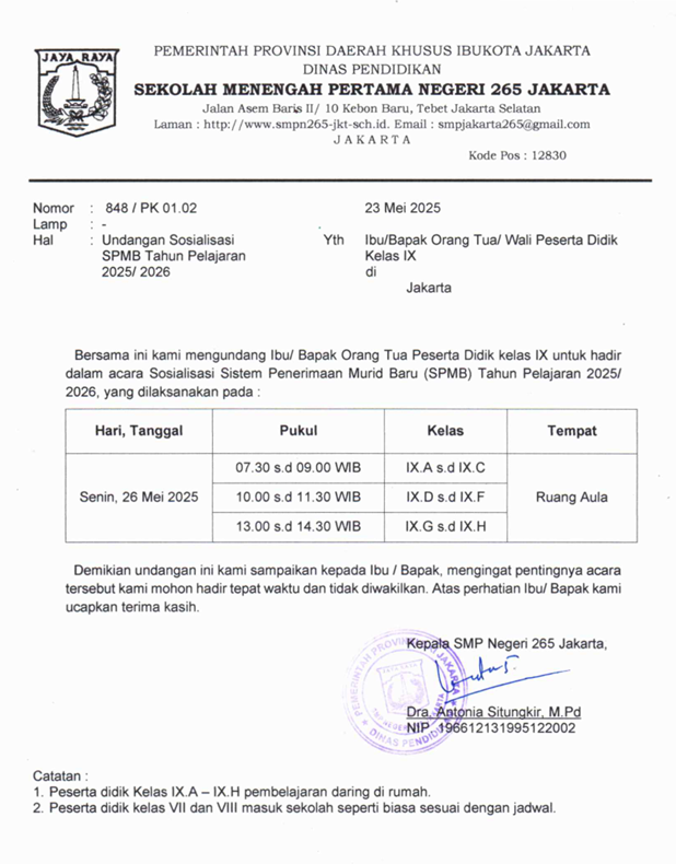 Undangan Sosialisasi SPMB Tp. 2025/2026
